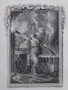 Suite complète de 140 planches, titre compris, et un cul-de-lampe à pleine page, gravés sur cuivre par Basan et Le Mire d'après Boucher, Gravelot, Moreau, Monnet, Eisen, Choffard et d'autres artistes pour l'édition en 4 volumes des Métamorphoses d'Ovide donnée à Paris en 1767-1771.
