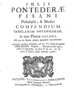 Toscan d'origine, Giulio Pontedera (1688-1757) fut professeur de botanique à l'université de Padoue et directeur du jardin botanique de la ville. Il correspondait avec Linné et, bien qu'il fît partie des opposants à son système, ce dernier nomma le genre Pontederia d'après son nom.