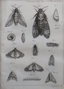 Les trois premiers tomes concernent les chenilles et papillons, le quatrième, les « gallinsectes » et les mouches, le cinquième, les mouches, cigales et abeilles, et enfin le sixième et dernier tome, les guêpes, entre autres.