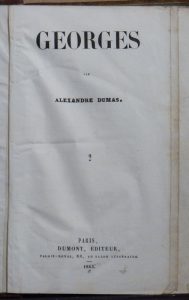 DUMAS (Alexandre). Georges. Paris, Dumont, 1843. 3 volumes in-8, demi-basane fauve, dos lisse, tranches mouchetées de bleu (Reliure de l'époque).