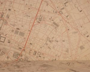 Très rare plan commencé en 1857 et terminé seulement en 1865. Il résume les travaux des géomètres du Plan de Paris depuis l'année 1842, et a été exécuté sous la direction d'Eugène Deschamps.