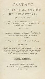 .1791.. LIBRO: .(HOROLOGÍA).. .ZERELLA Y YCOAGA, MANUEL DE:. .TRATADO GENERAL Y MATEMÁTICO DE RELOXERÍA QUE COMPRÉNDE EL MÓDO DE HACER RELOXES DE TODAS CLASES, Y EL DE SABERLOS COMPONER Y ARREGLAR POR DIFÍCILES QUE SÉAN. Madrid: Imp. Real,...