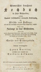 .1818. LIBRO: .(COCINA-AUSTRIA).. .GARTLER, IGNAZ; BARBARA HIKMANN:. .WIENERISCHES, BEWÄHRTES KOCHBUCH IN SECHS ABSCHNITTEN, WELCHES TAUSEND SECHSHUNDERT NEUNZEHN KOCHREGELN, FÜR FLEISCH UND FASTTEGE, , ALLE AUF DAS DEUTLICHSTE UND GRÜNDLICHSTE...