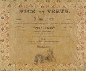 .1837. LIBRO: .(ARTE).. .JULES, DAVID [DIBUJANTE-LITOGRAFO]:. .VICE ET VERTU. ALBUM MORAL REPRÉSENTANT EN ACTION LES SUITES INÉVITABLES DE LA BONNE ED TE LA MAUVAISE CONDUITE. DOUZE SUJETS. COMPOSÉS ET LITHOGRAPHIES PAR. OUVRAGE QUI A OBTENU LE...