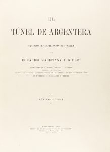 .1891-1892. LIBRO: .(ARQUITECTURA).. .MARISTANY Y GIBERT, EDUARDO:. .EL TUNEL DE ARGENTERA. (TRATADO DE CONSTRUCCIÓN DE TUNELES). [6 VOLÚMENES]. Barcelona: Imprenta de Henrich y Comp., 1891-1892. 6 vol. Folio menor. (Texto) I: XX-513 p.+ 4 estados...