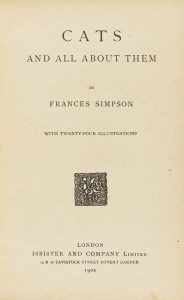 .1902. LIBRO: .[ARTE-GATOS].. .SIMPSON, FRANCES:. .CATS AND ALL ABOUT THEM. WITH TWENTY-FOUR ILLUSTRATIONS. London: Isbister and Company Limited, 1902. 8º. 126 p. + 1 h.+ 12 h. de publicidad sobre gatos. Ilustrado con 24 láminas fotográficas de...