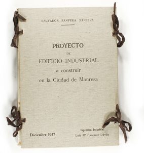 .1947.. LIBRO: .(ARQUITECTURA).. .PROYECTO DE EDIFICIO INDUSTRIAL A CONSTRUIR EN LA CIUDAD DE MANRESA PARA SALVADOR SANPERA SANPERA. Diciembre de 1947. Ingeniero industrial Luis Mª Cascante Dávila. Presentado en una carpeta de tapas de arpillera...