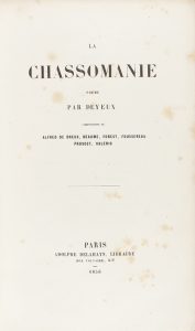 .1856. LIBRO: .[CAZA].. .DEYEUX:. .LA CHASSOMANIE. POÈME. COMPOSITIONS DE ALFRED DE DREUX, BEAUME, FOREST, FOUSSEREAU, PROVOST ET VALERIO. Paris: Adolphe Delahays libraire, 1856. 4º menor. 334 p. Ilustrado con 10 láminas grabadas. Conserva...
