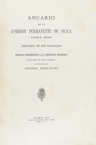 .1868.. LIBRO: .(PESCA-VALENCIA).. .FERNÁNDEZ, CESÁREO:. .ANUARIO DE LA COMISION PERMANENTE DE PESCA PARA 1868. Madrid: Tip. de Estrada, 1868. 4º menor. 567 p. + 3 lám. plegadas. Intonso. Puntos de óxido. Rústica original con el lomo quebrado,...