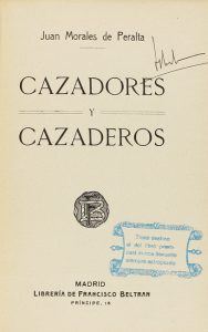 .1911.. LIBRO: .(CAZA).. .MORALES DE PERALTA, JUAN:. .CAZADORES Y CAZADEROS. Madrid: Libr. de Francisco Beltran, 1911. 8º. 204 p. + 2 h. Ilustr. en el texto. Bonita enc. en media piel y puntas, nervios. Conserva cubiertas originales. Exlibris de...