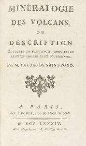 .1784. LIBRO: .(GEOLOGÍA).. .FAUJAS DE SAINT-FOND, BATHÉLÉMY:. .MINÉRALOGIE DES VOLCANS ou description de toutes les substances produites ou rejetées par les feux souterrains. Paris: Chez Cuchet, 1784. 8º mayor. 18 p. + 511 p. + 3 lám. Portada...