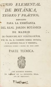 .1785.. LIBRO: .(CIENCIAS-BOTÁNICA).. .GOMEZ ORTEZA, CASIMIRO; PALAU Y VERDERA, ANTONIO:. .CURSO ELEMENTAL DE BOTÁNICA, TEÓRICO Y PRÁCTICO, dispuesto para la enseñanza del Real Jardin Botánico de Madrid... Madrid: Imp. Real, 1885. 2 tomos en un...