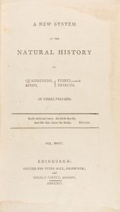 .1791-1792. LIBRO: .(BIOLOGÍA).. .[BUFFON]:. .A NEW SYSTEM OF THE NATURAL HISTORY of quadrupeds, birds, fishes and insects in three volumes. Edinburgh and London: Printed for Peter Hill and Thomas Cadell, 1791-1792. 3 vol. en 8º mayor. I: XVIII p....