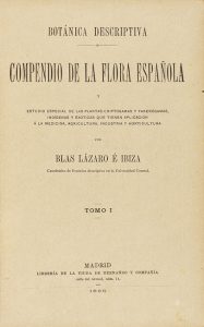 .1896. LIBRO: .(CIENCIAS-BOTÁNICA). .LAZARO IBIZA, BLAS:. .BOTÁNICA DESCRIPTIVA. COMPENDIO DE LA FLORA ESPAÑOLA y estudio especial de las plantas criptógamas y fanerógamas, indígenas y exóticas que tienen aplicación a la medicina,...