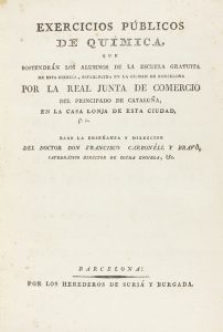 Pequeña galería en el margen interior en algunas hojas centrales. Marca manuscrita de anterior poseedor. [Más:] EXERCICIOS PÚBLICOS DE QUÍMICA ...Id: Herederos de Suriá y Brugada, s.a. Id. 4 h. + XXXVII p. 2 vol., el primero enc. en pasta española con dorados en ambos planos y lomera, rozada y el segundo enc. en cartoné con papel al agua.