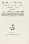 .1796.. LIBRO: .(MEDICINA-FARMACIA).. .CARBONELL, FRANCISCO:. .PHARMACIAE ELEMENTA CHEMIAE RECENTIORIS FUNDAMENTIS INNIXA. Barcelona: Joannis Francisci Piferrer, 1796. 4º menor. XII + 125 p. + 1 h. Buena factura, texto con apostillas marginales....