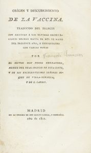 .1801.. LIBRO: .(MEDICINA).. .[CHAUSSIER, FRANÇOIS]:. .ORIGEN Y DESCUBRIMIENTO DE LA VACCINA. Traducido del francés... por Pedro Hernandez. Madrid: Benito Garcia, 1801. 8º. Frontis + 72 p. + 3 lám. Bellamente ilustr. con 4 lám. calcográficas...