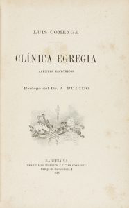 .1895. LIBRO: .[MEDICINA].. .COMENGE, LUIS:. .CLÍNICA EGREGIA. APUNTES HISTÓRICOS. PRÓLOGO A. PULIDO. Barcelona: Imprenta Henrich y Cia., en comandita, 1895. 8º. XXI-613 p. Ilustrado con cenefas y grabados intercalados en el texto. Leves puntos...