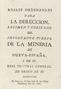 .1786.. LIBRO: .(DERECHO-COLONIAS).. .REALES ORDENANZAS PARA LA DIRECCION, REGIMEN Y GOBIERNO DEL IMPORTANTE CUERPO DE LA MINERIA DE NUEVA-ESPAÑA, y de su Real Tribunal General de orden de Su Magestad. Imp. Casa Real de los Niños Huerfanos. Lima,...