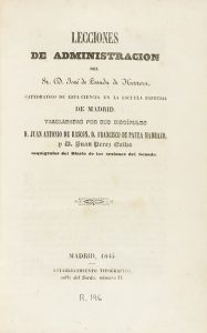 .1843.. LIBRO: .(DERECHO).. .LOSADA DE HERRERA, JOSÉ DE:. .LECCIONES DE ADMINISTRACIÓN DEL... Trasladadas por sus discípulos D. Juan de Rascon, D. Francisco de Paula Madrazo, y D. Juan Perez Calbo... Madrid: Establecimiento tipográfico calle del...