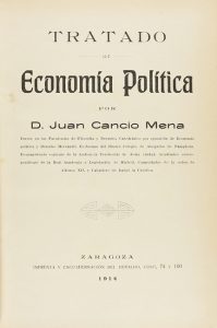 .1914. LIBRO: .(CARLISMO-ECONOMÍA).. .CANCIO MENA, JUAN:. .TRATADO DE ECONOMÍA POLÍTICA. Zaragoza: imprenta y Enc. del Heraldo [edición privada], 1914. 4º menor. 400 p. Enc. original de la época en piel. Muy raro en comercio. Edición original...