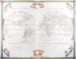 .1973.. LIBRO: .(FACSÍMIL-ATLAS).. .ATLAS DE JOAN MARTINES 1587. Madrid: Ministerio de Educación y Ciencia, 1973. Gran folio. 10 h. de texto + 19 mapas dobles a todo color y con dorados. Enc. en símil piel, planos decorados, estuche cartoné algo...