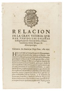 .1650. FOLLETO: .[PERIODISMO].. .SETGE DE TORTOSA I CAPITULACIÓ. DESEMBRE DE 1650. PRESA DE LOS ALFACS, TORTOSA, CAMBRILS, TARRAGONA, 1650] RELACION DE LA GRAN VITORIA QUE HAN TENIDO LAS GALERAS DE ESPAÑA, SIENDO GENERAL DELLAS EL EXCELENTÍSSIMO...