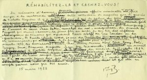 Breton André. Réhabilitez-La Et Cachez-Vous ! Manuscrit Autographe Signé. 15 mars 1953 ; une demi-page in-4.
