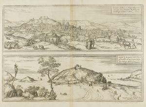 .1600 ca. GRABADO: .HOEFNAGLE, GEORGIUS:. .BURGOS CELEBRIS ET ANTIQUA HISPANIAE CIVITAS.../ SANCT. SEBASTIANUM SULGO DONOSTIEN AD MARE OCEANUM... Antuerpianus [Antwerp]: 33,5 x 48 cm huella, 40 x 54 cm papel. Una vista de la ciudad de Burgos y una...