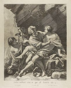 es una cita san Pablo del Nuevo Testamento, aunque la imagen de dos jóvenes con un hombre mayor sugiere el episodio del Antiguo Testamento de Lot y sus hijas.