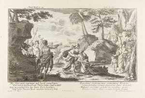 .s. XVII.. GRABADO: .(ANTIGUO TESTAMENTO).. .ENGELBRECHT, MARTIN:. .REENCUENTRO DE ESAÚ Y JACOB.. 20 x 32 cm plancha, 23 x 34,5 papel. Grabado con el texto en alemán y latín en plancha.