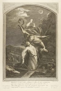 .s. XVIII.. GRABADO: .(NUEVO TESTAMENTO).. .MOYREAU,J.:. .ORACIÓN DE JESÚS EN EL HUERTO DE GETSEMANÍ. 36 x 23,5 cm plancha, 37 x 26,5 cm. Texto del evangelio de Lucas en latín en plancha.