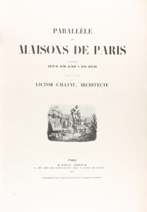 .1850.. GRABADO: .(ARQUITECTURA).. .CALLIAT, VICTOR:. .PARALLÈLE DES MAISONS DE PARIS CONSTRUITES DEPUIS 1830 JURQU´A NOS JOURS. Paris: Éd. B. Bance, 1850. Gran folio. 5 h. + 186 lám. Grabados dibujados por Calliat a excepción de la última...