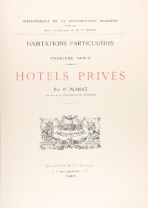 Presentado en carpeta editorial con la lomera en piel, ligeramente rozada. Completa obra que contiene bellas litografías en color de numerosas construcciones hoteleras, de la mano de arquitectos de la talla de Bayard, Bardon, Duvert, Pascal, Marotte, Maillart, Pascal, Thévin, etc. corresponden a fachadas, plantas, secciones, detalles arquitectónicos como decoraciones de estancias interiores. FRBNF 31119980.