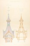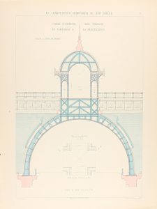 lám. cromolitográficas, algunas de ellas dobles. Presentadas en carpeta de cartoné original, lomo y puntas en tela, lomera semidesprendida. Bellas lám. en color de construcciones y estructuras en hierro y madera. Publicación de gran prestigio en la introducción de materiales novedosos y técnicas mixtas en hierro y madera para la construcción, generalizándose dentro de la corriente artística del Arte Noveau.