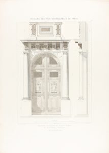 total de 100), sin encuadernar. Bellas lám. de la famosa publicación francesa con vistas, alzados, secciones y planimetrías de casas, villas y pavellones. [Más]:. MAISONS PLUS REMARQUABLES DE PARIS... Id: Caudrilier, 1880 ca. Folio mayor. 65 lám. de 80 presentadas en carpeta original con la lomera en tela. Bellas láminas dibujadas por Vacquer de fachadas, planimetrías y secciones de edificios emblemáticos. Cercos de humedad en la mayoría de láminas.