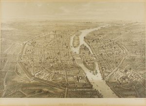 .s. XIX.. GRABADO: .BENOIT, FÉLIX:. .PARIS SOUS FRANÇOIS 1er.. Nantes: Lith. Carpentier. 26 x 39 cm, imagen. Litografía de una vista de París, se observa el perímetro de la muralla y las islas más importantes del Sena, con el perfil de Notre...
