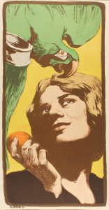 .1908.. GRABADO: .(MODERNISMO).. .JANK, ANGELO:. .LA FEMME AU PERROQUET.. [París]: CH. Masson & H. Piazza. 1908. Huella: 36 x 18 cm, papel: 40 x 30 cm. Cromilitografía presentada en paspartú. Firmada por A. Jank para ´L´Estampe Moderne´. Bella...