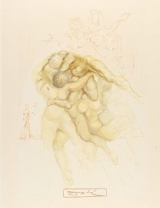 .1963.. GRABADO: .(ARTE).. .DALÍ, SALVADOR:. .LOS IRACUNDOS. 33 x 26 cm. Presentada en paspartú. Litografía que corresponde al Canto 8 del Infierno de la Divina Comedia ilustrada por Dalí (Ed. d´Art les Heures Claires, 1963).