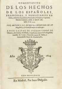 .1624.. LIBRO: .(HISTORIA).. .HERRERA, ANTONIO:. .COMENTARIOS DE LOS HECHOS DE LOS ESPAÑOLES, FRANCESES Y VENECIANOS EN ITALIA, Y DE TODAS REPUBLICAS, POTENTADOS, PRINCIPES Y CAPITALES FAMOSOSO ITALIANOS, DESDE EL AÑO DE 1281 HASTA EL DE 1559....