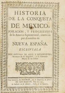 476 p. Cabeceras grabadas, texto a dos columnas. Puntos de óxido. Enc. en pasta española, tejuelo. Palau 318615. Solis fue secretario del rey e historiador de Indias. Usó todos los documentos y manuscritos que encontró en los archivos españoles.
