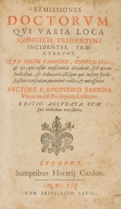 .1619. LIBRO: .(CONCILIO TRENTO).. .BARBOSA, AUGUSTINO P.:. .REMISSIONES DOCTORUM QUI VARIA LOCA CONCILII TRIDENTINI INCIDENTER TRACTARUNT. Lugduni [Lyon]: Horatii Cardon, 1619. 8º menor. 16 h. + 160 fol. + 32 h. Portada a dos tintas. Papel...