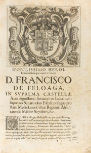 [Lyon]: Supmtib. Phil. Borde, Laur. Arnaud, et Claud. Rigaud, 1662-1669. 3 vol. en folio. I: 34 h. + 406 p. + 20 h. II: 34 h. + 362 p. + 18 h. III: 34 h. + 298 p. + 14 h. Portadas a dos tintas, con grabados calcográficos. Señal de óxido. Tres vol. enc. en pergamino de época, lomeras rotuladas.