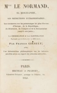 .1843. LIBRO: .(ADIVINACIÓN-CARTOMANCIA).. .GIRAULT, FRANCIS:. .MLLE. LE NORMAND, SA BIOGRAPHIE, SES PREDICTIONS EXTRAORDINAIRES. LA CHIROMANCIE ET LA CARTOMANCIE EXPLIQUEES PAR LA PYTHONISSE DU XIXE SIECLE, ETC. Paris: Breteau et Pichery,...