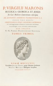 .1763-1765. LIBRO: .(LITERATURA CLÁSICA).. .VIRGILIUS MARO:. .BUCOLICA GEORGICA ET AENEIS Ex-cod. Mediceo-Laurentiano descripta ab Antonio Ambrogi Florentino S. J. italico versu reddita adnotationibus atque variantibus lectionibus... 3 VOL. Roma:...