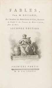 .1777. LIBRO: .(LITERATURA).. .BOISARD, M.:. .FABLES. SECONDE ÉDITION. Paris, Chez Lacombe, Libraire, 1777. 2 volúmenes. 8º mayor. I: Portada con viñeta grabada+ 220 p. + 1 h. II: Portada con viñeta grabada+ 307 p. Ilustrado con 9 lám. fuera de...