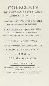 .1779-1790. LIBRO: .(LITERATURA-POESÍA). .SÁNCHEZ DE URIBE, TOMÁS ANTONIO:. .COLECCION DE POESIAS CASTELLANAS ANTERIORES AL SIGLO XV. Madrid: Antonio de Sancha. 1779-1790. 4 vol. en 8º. I: POEMA DEL MIO CID. 9 h. + LXII + 404 p. + 1 h. II:...