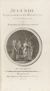 .1803. LIBRO: .(LITERATURA).. .KOSEGARTEN, THEOBOUL:. .JUCUNDE. EINE LÄNDLICHE DICHTUNG IN FÜNF EKLOGEN. Berlin: Bei Johann Friedrich Unger, 1803. 8º mayor. Frontispicio, 2 hojas, 203 p. Portada con viñeta grabada. Ilustrado con 5 láminas...