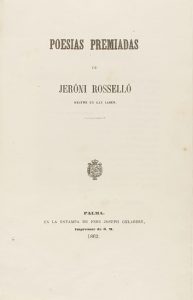 .1862. LIBRO: .(LITERATURA-MALLORCA).. .ROSSELLÓ, JERÓNI:. .POESIAS PREMIADAS DE JERONI ROSSELLÓ. [LO JOGLAR DE MAYLORCHA]. Palma de Mallorca: En la Estampa de Pere Joseph Gelabert, Impressor de S. M., 1862. 8º mayor. 406 p.+ 1 h. Enc. en media...