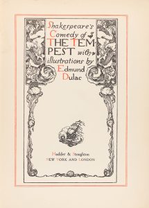 .1908 ca.. LIBRO: .(LITERATURA).. .SHAKESPEARE, WILLIAM:. .THE TEMPEST with Illustrations by Edmund Dulac. New York & London: Hodder & Stoughton, 1908 ca. XXIV p. + 143 p. Portada a dos tintas. Profus. ilustr. con láminas sobrepuestas en color fuera...